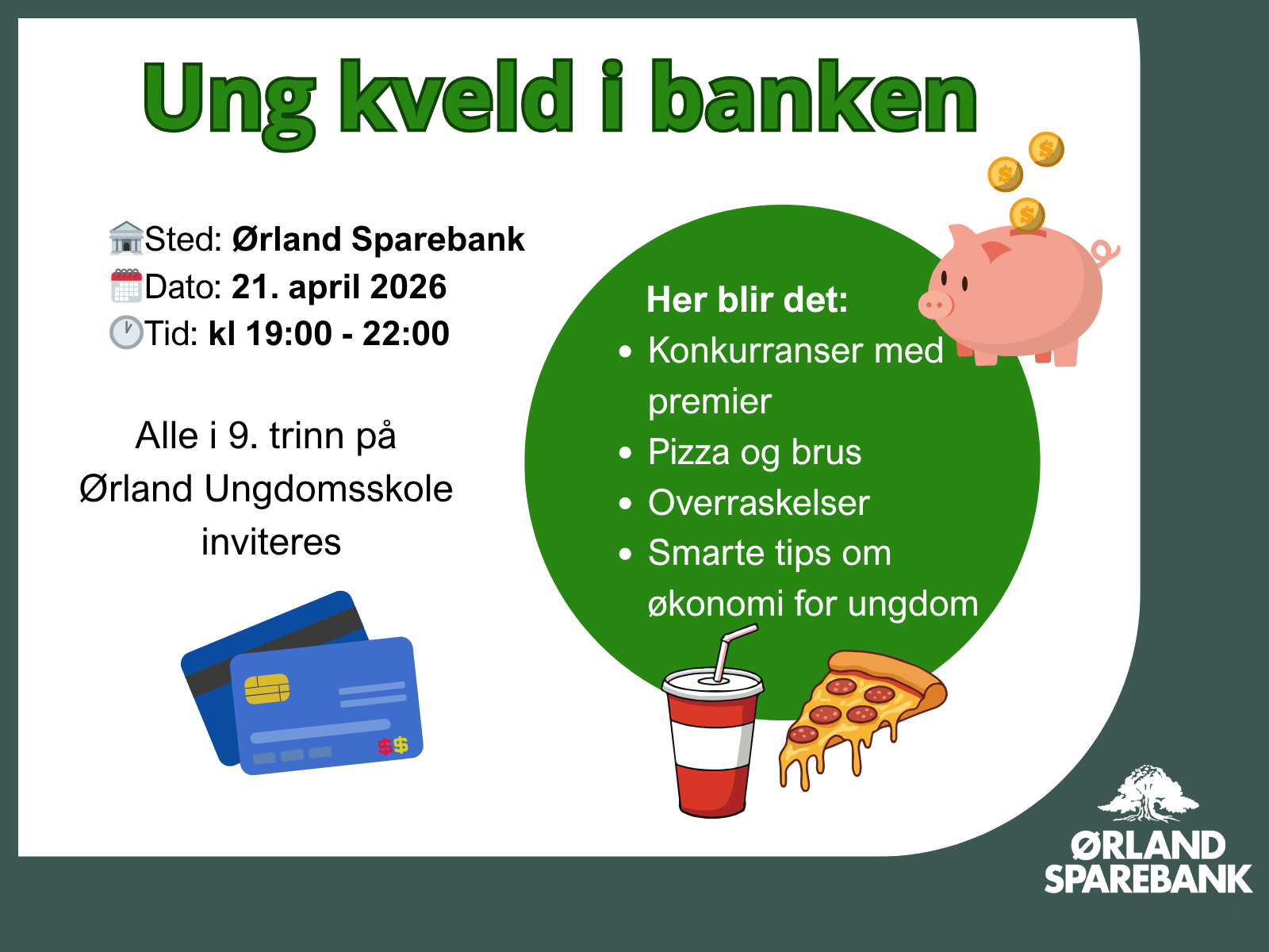 Hvert år inviterer Ørland Sparebank alle fra 9. trinn ved Ørland Ungdomsskole til en kveld i banken. Det har vi gjort i over 20 år.